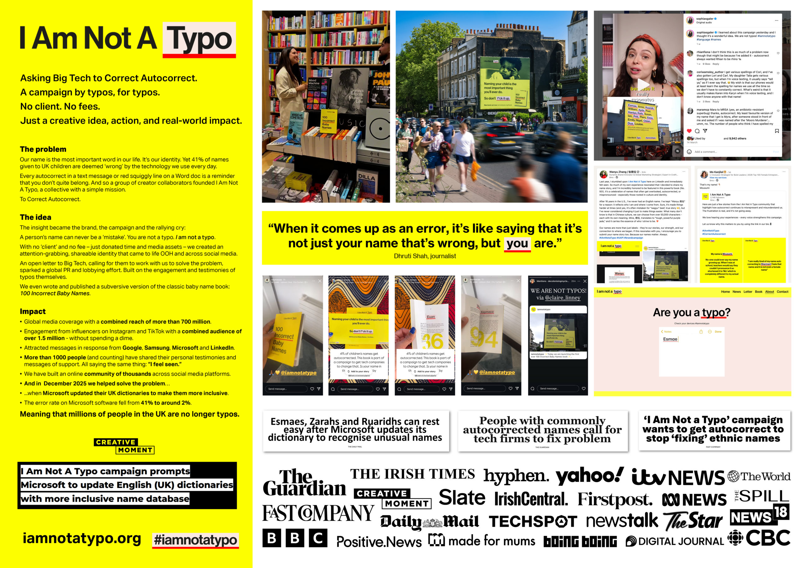I Am Not A Typo targets a real inclusion issue – the fact that millions of people are othered and have their identity invalidated every day in the form of their name being considered a typo by the devices we use.